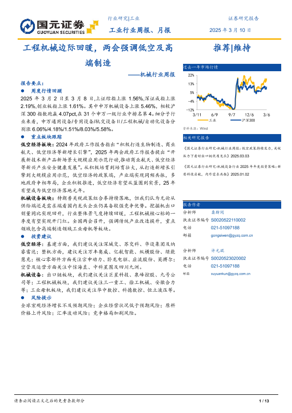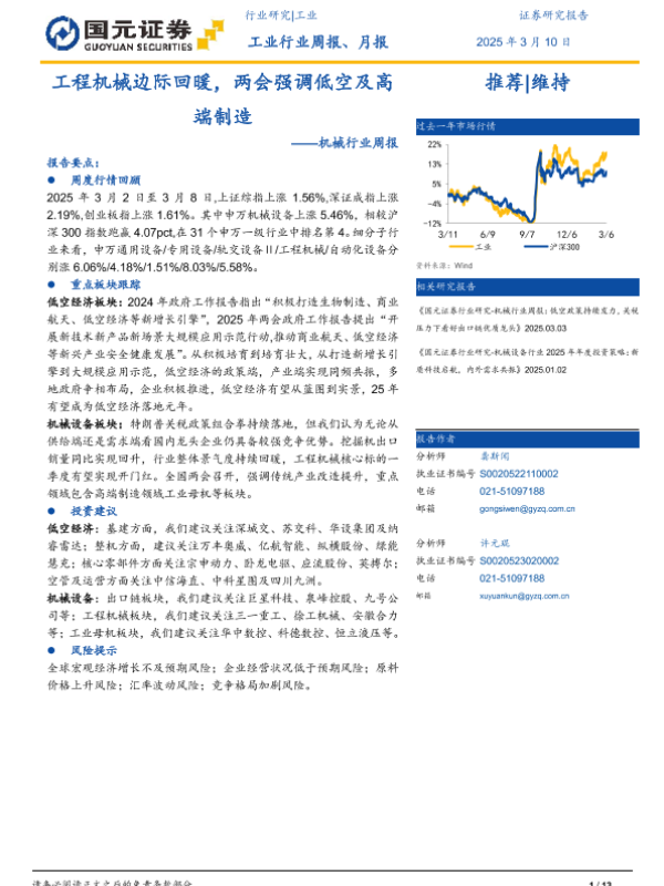 【国元证券】【20250310】机械行业周报:工程机械边际回暖,两会强调低空及高端制造-13页
