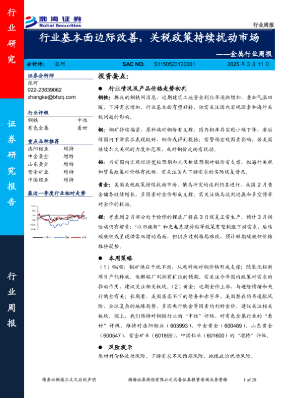 【渤海证券】【20250311】金属行业周报:行业基本面边际改善,关税政策持续扰动市场-20页
