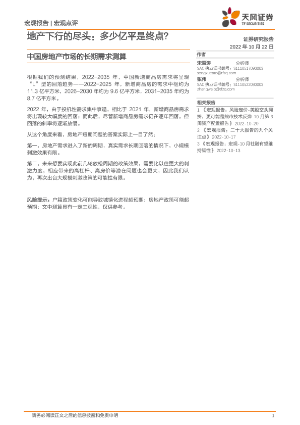 【天风证券】【20221022】中国房地产市场的长期需求测算:地产下行的尽头,多少亿平是终点?-19页