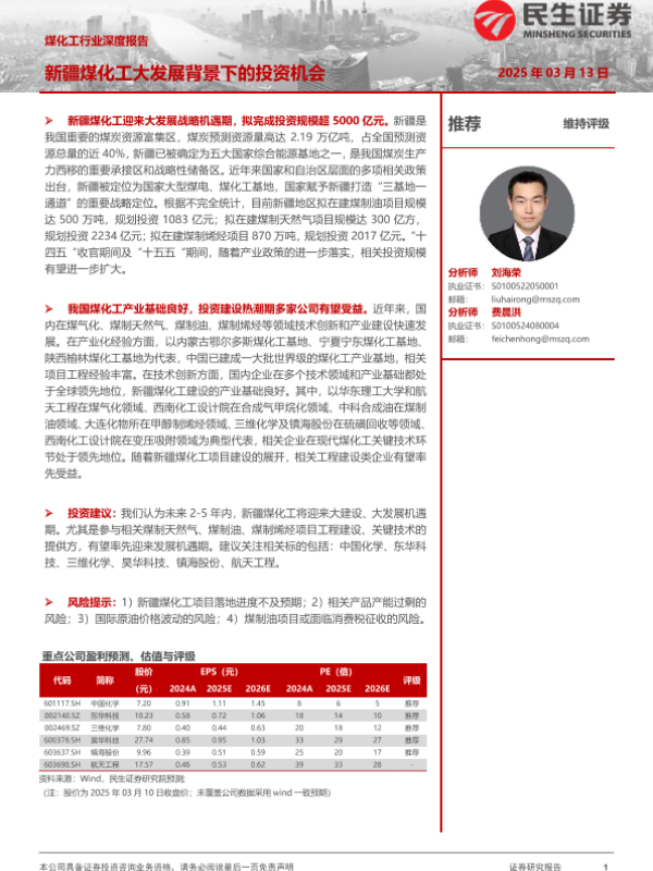 【民生证券】【20250313】20250313-民生证券-煤化工行业深度报告:新疆煤化工大发展背景下的投资机会-53页