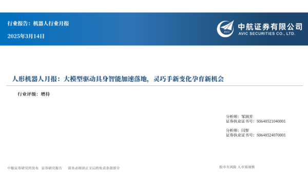 【中航证券】【20250314】人形机器人月报:大模型驱动具身智能加速落地,灵巧手新变化孕育新机会-21页