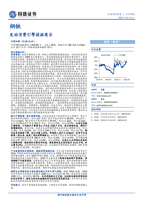 【国盛证券】【20250315】20250315-国盛证券-钢铁行业周报:发动消费引擎提振需求-16页