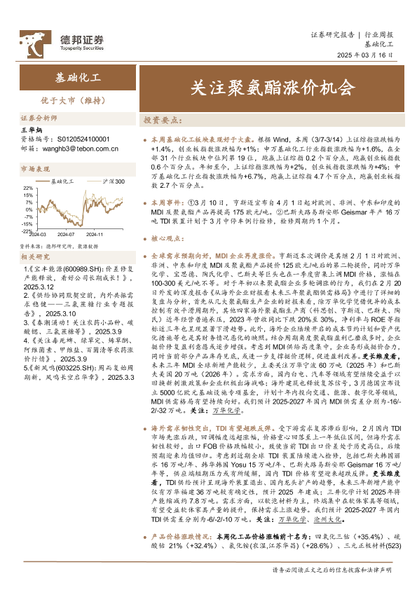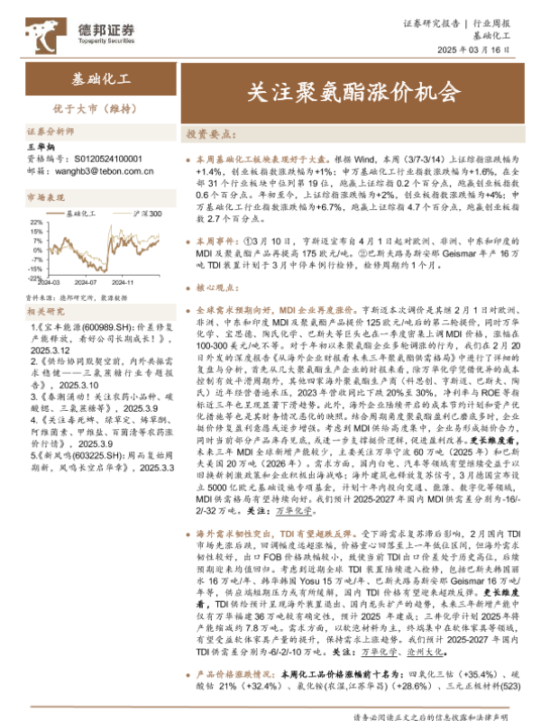 【德邦证券】【20250316】20250316-德邦证券-基础化工行业周报:关注聚氨酯涨价机会-41页