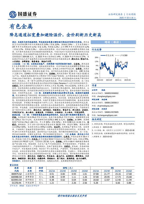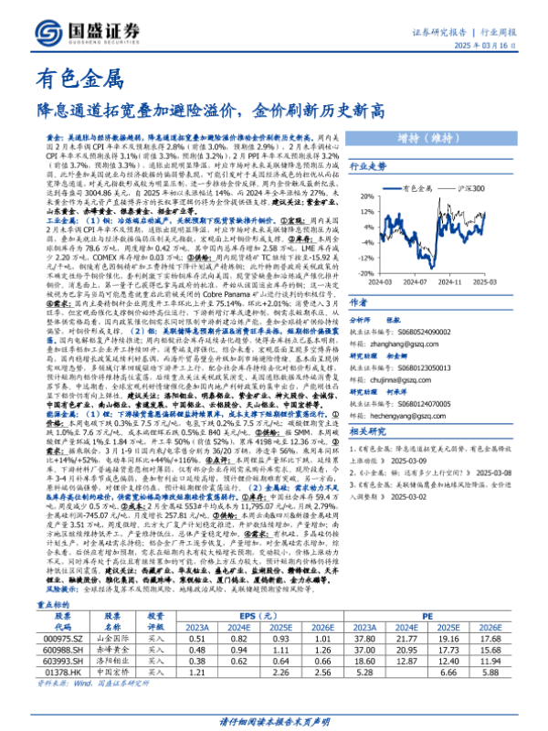 【国盛证券】【20250316】20250316-国盛证券-有色金属行业周报:降息通道拓宽叠加避险溢价,金价刷新历史新高-29页