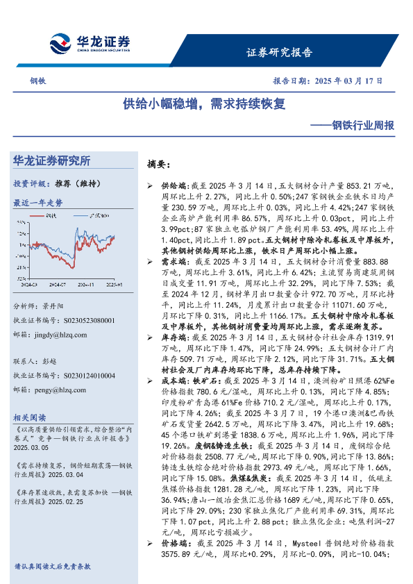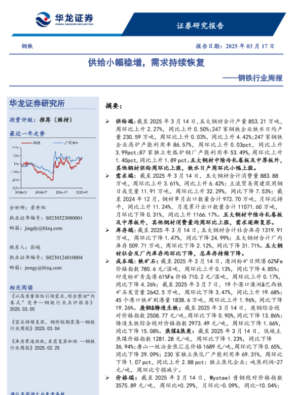 【华龙证券】【20250317】供给小幅稳增,需求持续恢复-18页