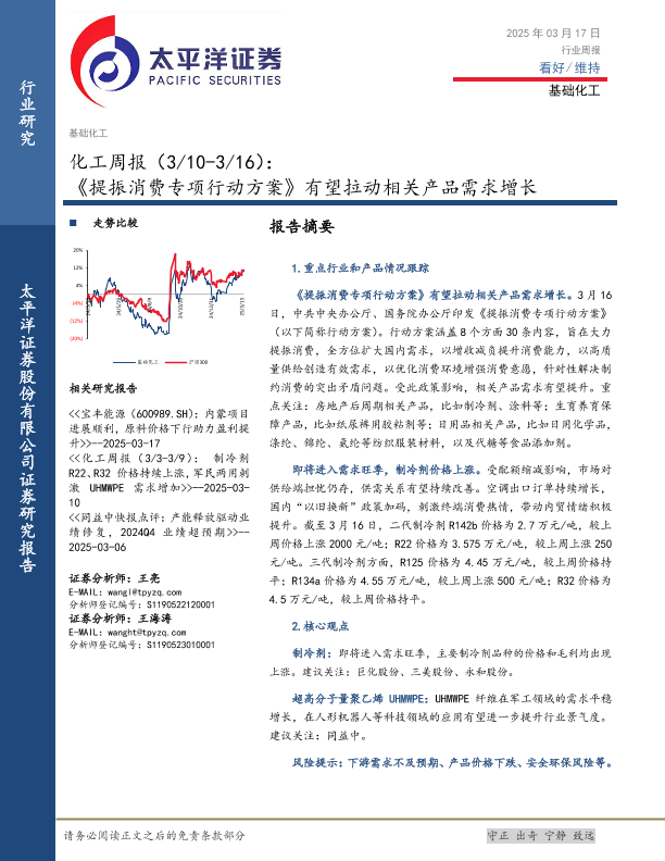 【太平洋证券】【20250317】20250317-太平洋-化工行业周报:《提振消费专项行动方案》有望拉动相关产品需求增长-31页