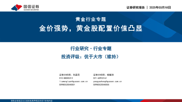 【国信证券】【20250318】金价强势,黄金股配置价值凸显-30页