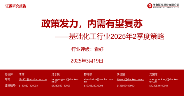 【浙商证券】【20250319】基础化工行业2025年2季度策略:政策发力,内需有望复苏-32页