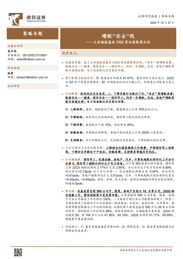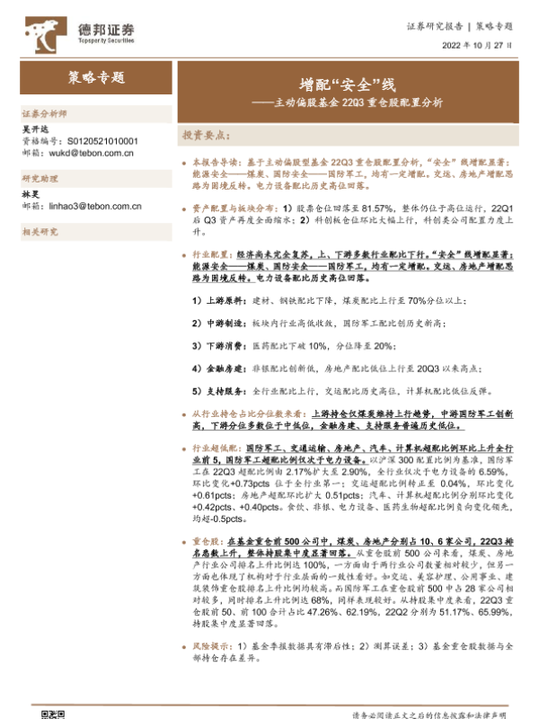 【德邦证券】【20221027】主动偏股基金22Q3重仓股配置分析:增配“安全”线-15页