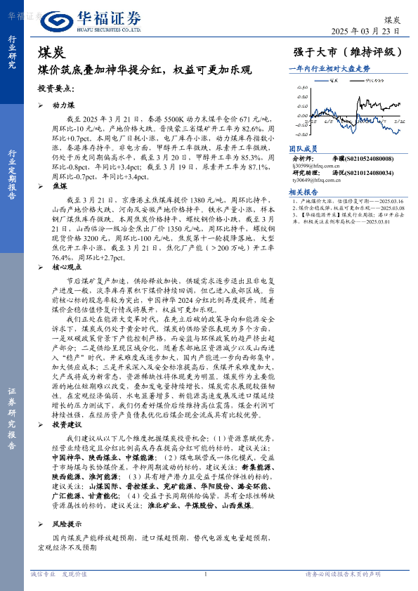【华福证券】【20250323】20250323-华福证券-煤炭行业定期报告:煤价筑底叠加神华提分红,权益可更加乐观-23页