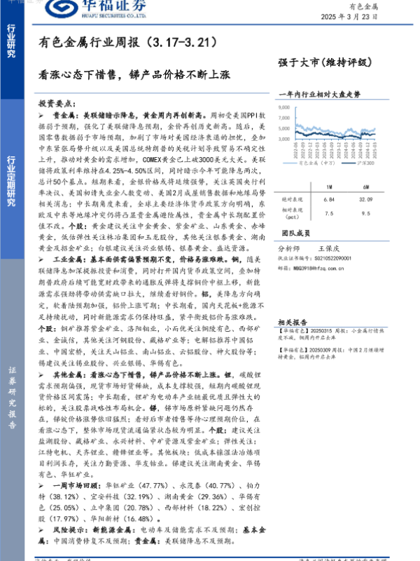 【华福证券】【20250323】20250323-华福证券-有色金属行业周报:看涨心态下惜售,锑产品价格不断上涨-15页