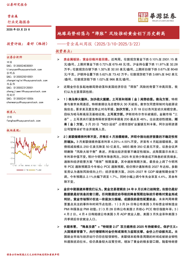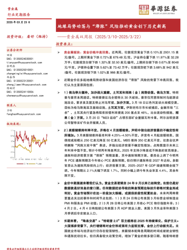 【华源证券】【20250323】20250323-华源证券-贵金属双周报:地缘局势动荡与“滞胀”风险推动黄金创下历史新高-12页