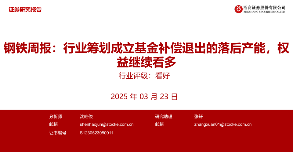 【浙商证券】【20250323】钢铁周报:行业筹划成立基金补偿退出的落后产能,权益继续看多-11页