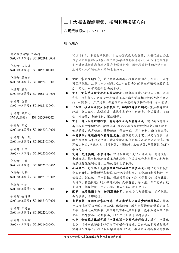 【首创证券】【20221017】二十大报告提纲挈领,指明长期投资方向-15页