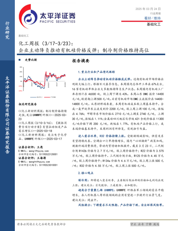 【太平洋证券】【20250324】20250324-太平洋-化工行业周报:企业主动降负推动有机硅价格反弹;制冷剂价格维持高位-31页