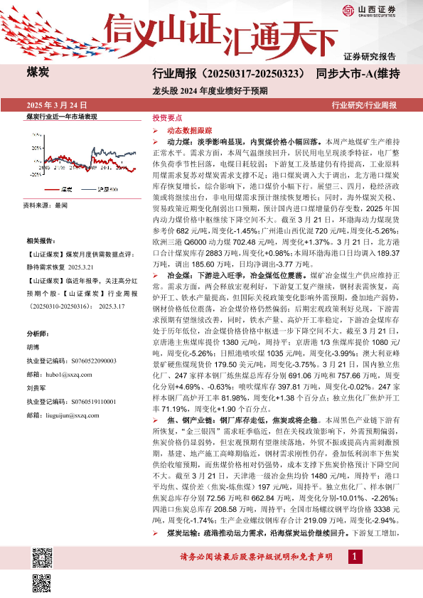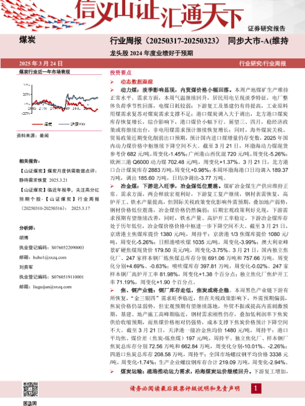 【山西证券】【20250324】煤炭行业周报:龙头股2024年度业绩好于预期-22页