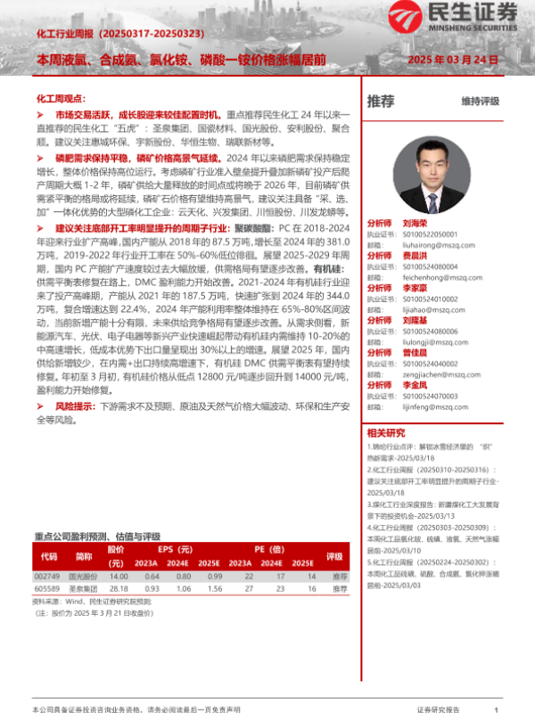【民生证券】【20250324】20250324-民生证券-化工行业周报:本周液氯、合成氨、氯化铵、磷酸一铵价格涨幅居前-35页