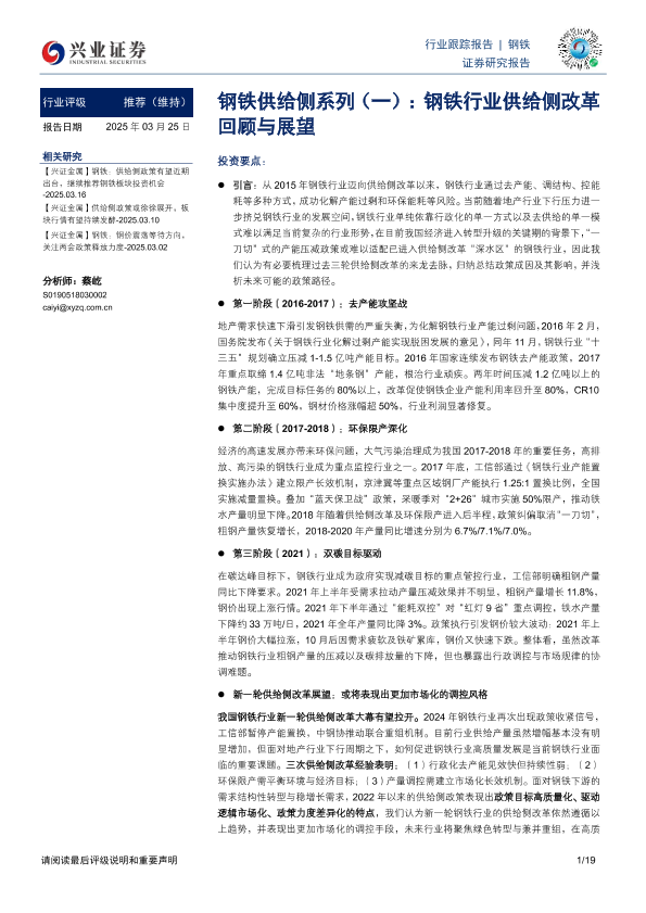 【兴业证券】【20250325】钢铁供给侧系列(一):钢铁行业供给侧改革回顾与展望-19页