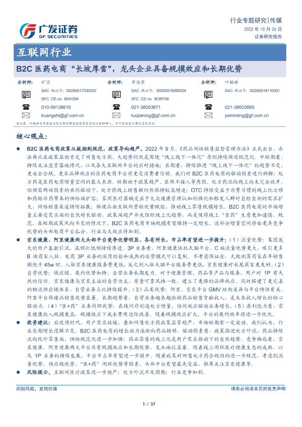 【广发证券】【20221026】互联网行业:B2C医药电商“长坡厚雪”,龙头企业具备规模效应和长期优势-37页