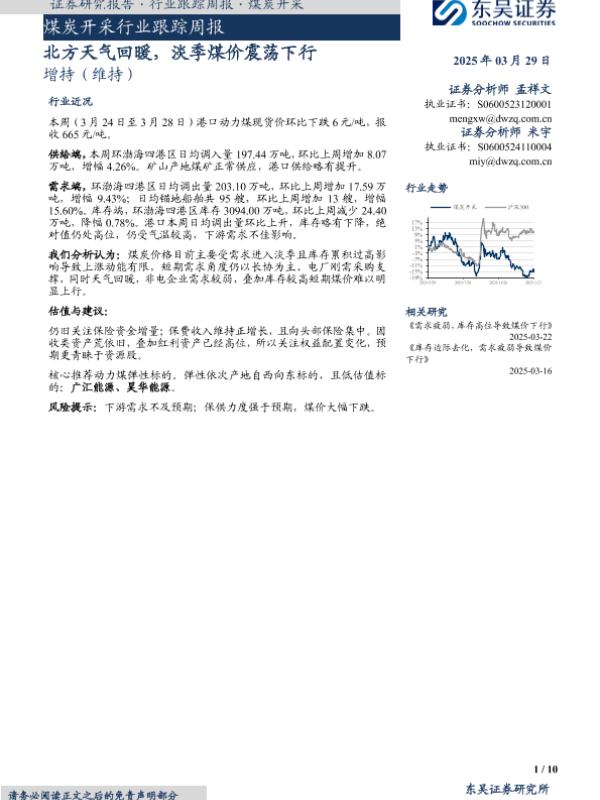 【东吴证券】【20250329】煤炭开采行业跟踪周报:北方天气回暖,淡季煤价震荡下行-10页