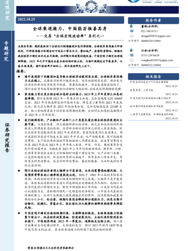【国泰君安证券】【20221025】交易“全球宏观波动率”系列之一:全球衰退接力,中国能否独善其身-22页