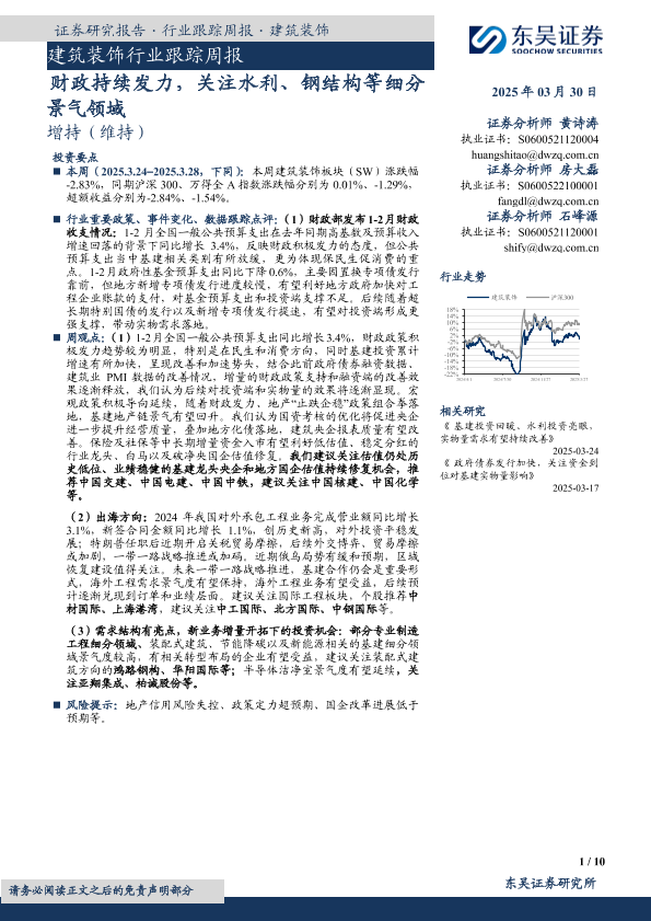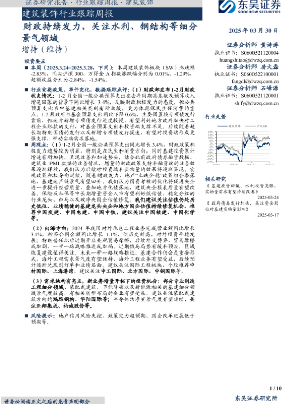 【东吴证券】【20250330】建筑装饰行业跟踪周报:财政持续发力,关注水利、钢结构等细分景气领域-10页