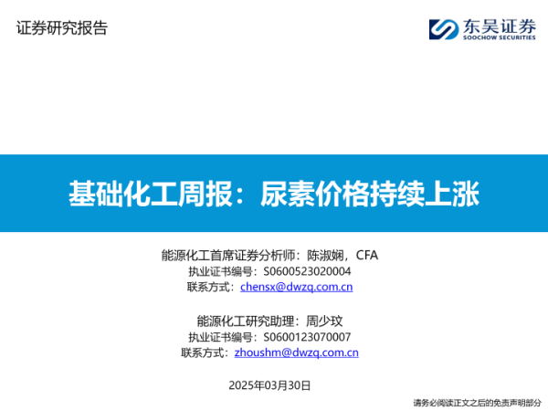 【东吴证券】【20250330】基础化工周报:尿素价格持续上涨-18页