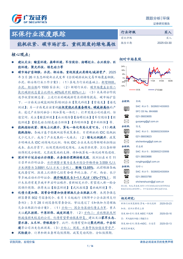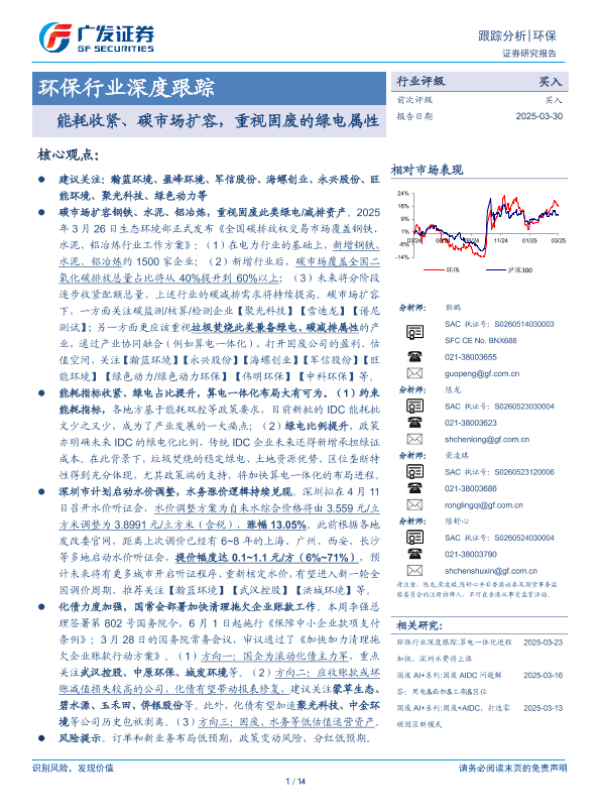 【广发证券】【20250330】20250330-广发证券-环保行业深度跟踪:能耗收紧、碳市场扩容,重视固废的绿电属性-14页