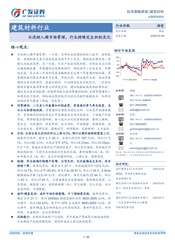 【广发证券】【20250330】20250330-广发证券-建筑材料行业投资策略周报:水泥纳入碳市场管理,行业持续发生积极变化-24页