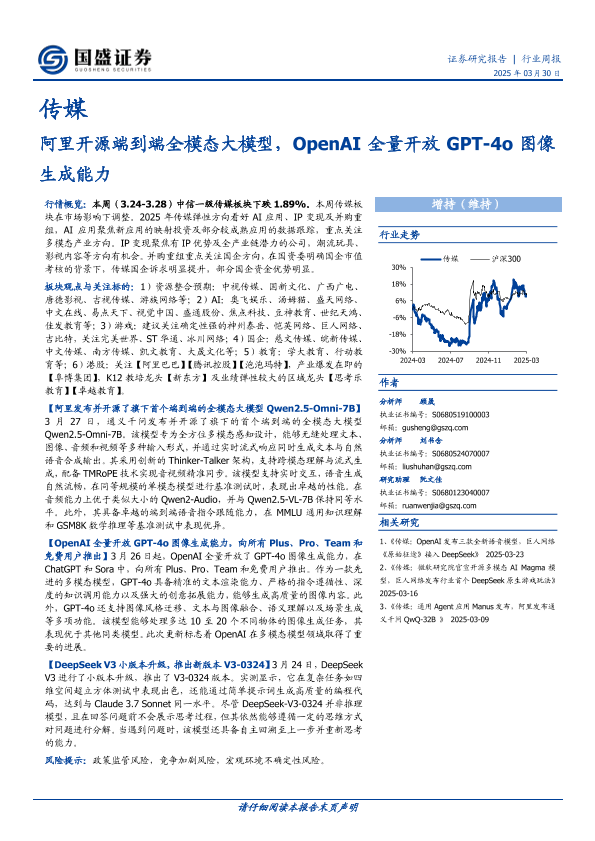 【国盛证券】【20250330】传媒行业周报:阿里开源端到端全模态大模型,OpenAI全量开放GPT-4o图像生成能力-10页
