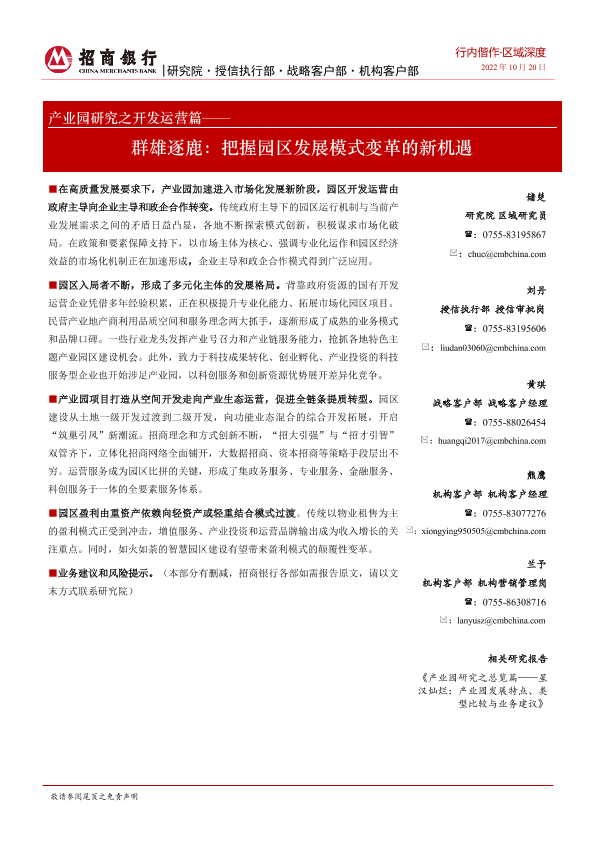 【招商银行】【20221020】产业园研究之开发运营篇:群雄逐鹿,把握园区发展模式变革的新机遇-22页
