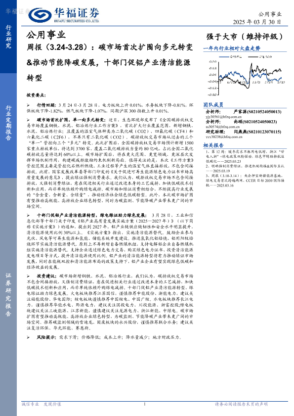 【华福证券】【20250330】公用事业周报:碳市场首次扩围向多元转变&推动节能降碳发展,十部门促铝产业清洁能源转型-25页
