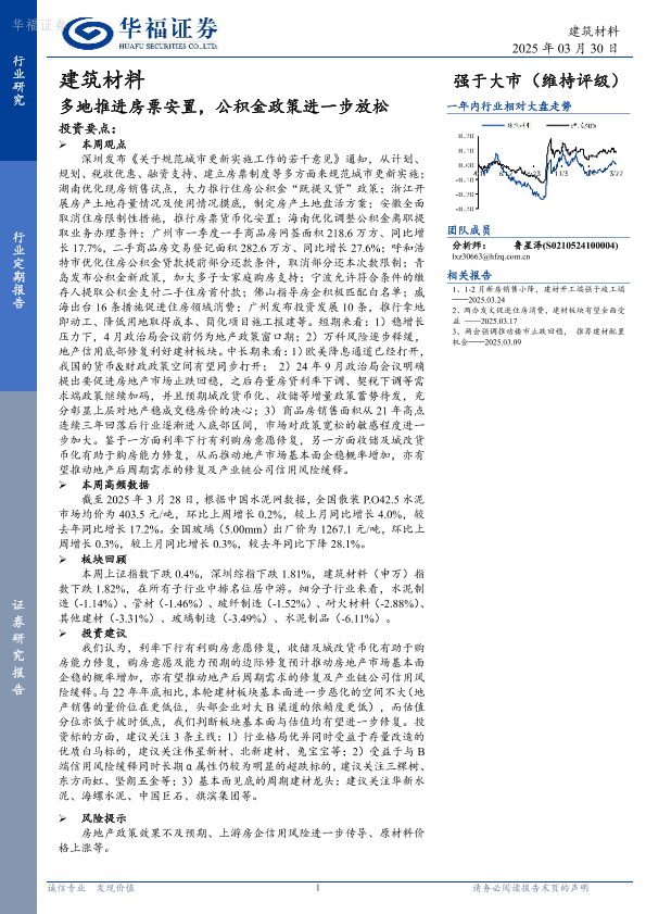 【华福证券】【20250330】20250330-华福证券-建筑材料行业定期报告:多地推进房票安置,公积金政策进一步放松-11页