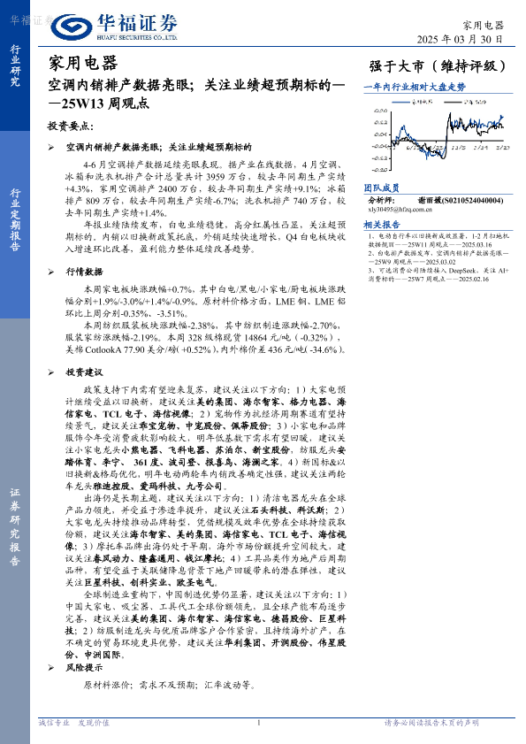 【华福证券】【20250330】家用电器25W13周观点:空调内销排产数据亮眼;关注业绩超预期标的-15页