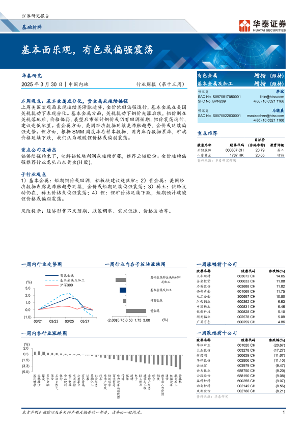 【华泰证券】【20250330】基础材料行业周报(第十三周):基本面乐观,有色或偏强震荡-20页