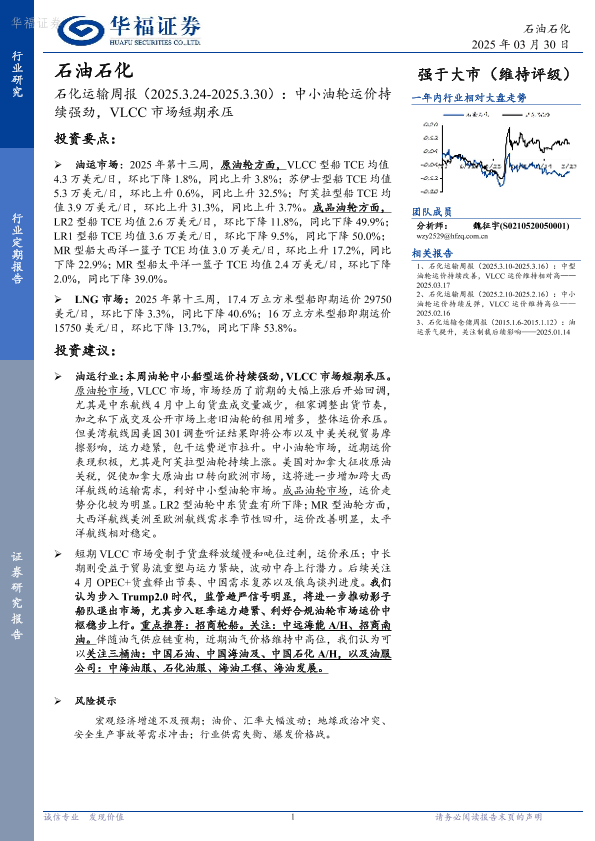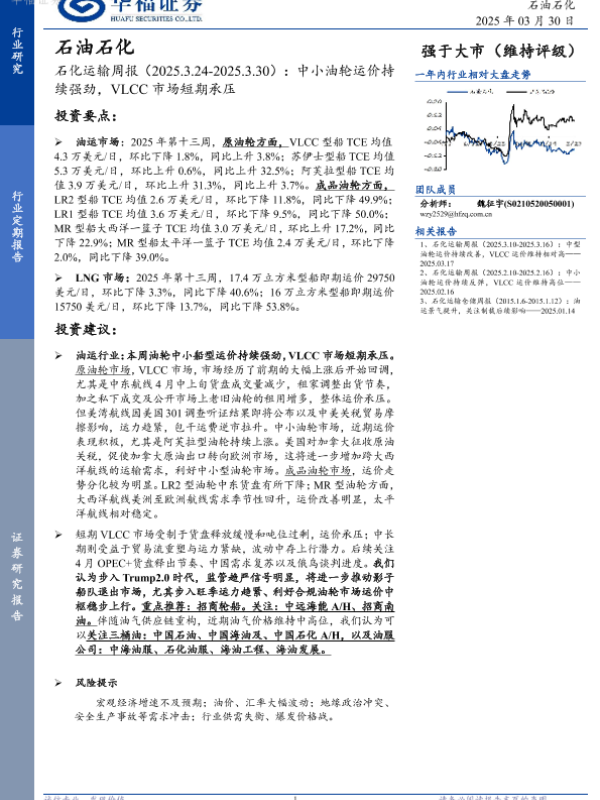 【华福证券】【20250330】20250330-华福证券-石化运输周报:中小油轮运价持续强劲,VLCC市场短期承压-11页