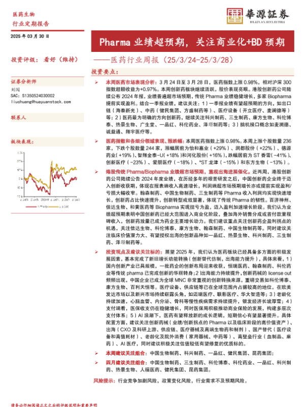 【华源证券】【20250330】20250330-华源证券-医药行业周报:Pharma业绩超预期,关注商业化+BD预期-14页