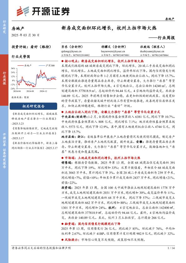 【开源证券】【20250330】新房成交面积环比增长,杭州土拍市场火热-14页
