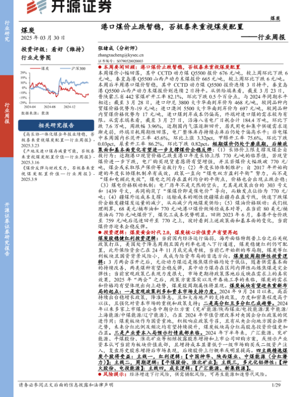 【开源证券】【20250330】煤炭行业周报:港口煤价止跌暂稳,否极泰来重视煤炭配置-29页