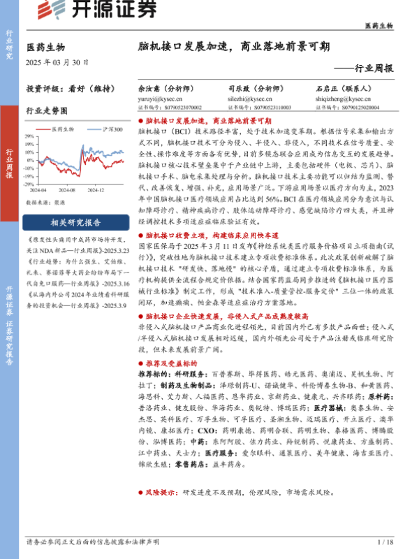 【开源证券】【20250330】医药生物行业周报:脑机接口发展加速,商业落地前景可期-18页