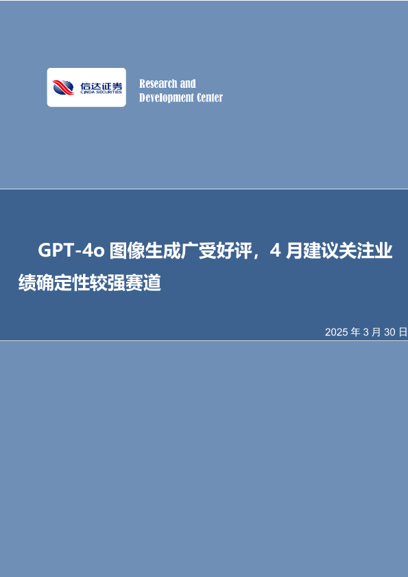 【信达证券】【20250330】GPT-4o图像生成广受好评,4月建议关注业绩确定性较强赛道-12页