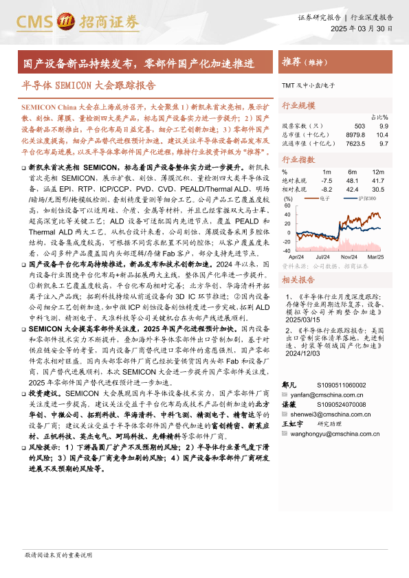 【海通证券】【20250330】20250330-招商证券-半导体SEMICON大会跟踪报告:国产设备新品持续发布,零部件国产化加速推进-10页