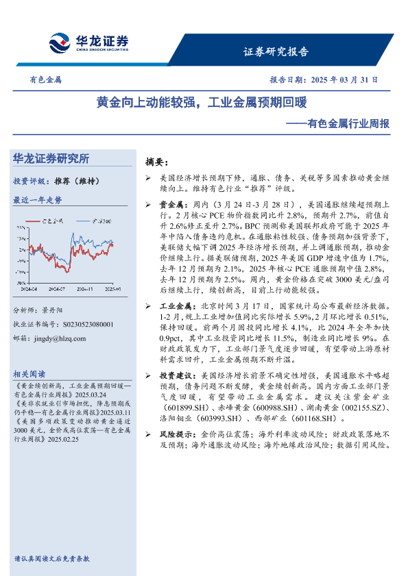 【华龙证券】【20250331】黄金向上动能较强,工业金属预期回暖-13页