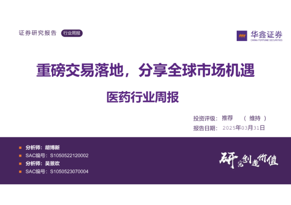 【华鑫证券】【20250331】医药行业周报:重磅交易落地,分享全球市场机遇-33页