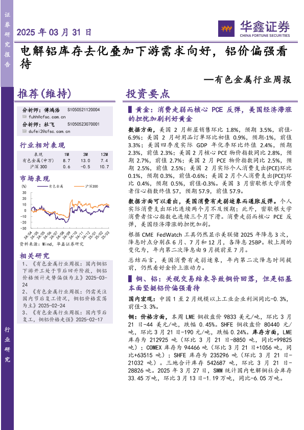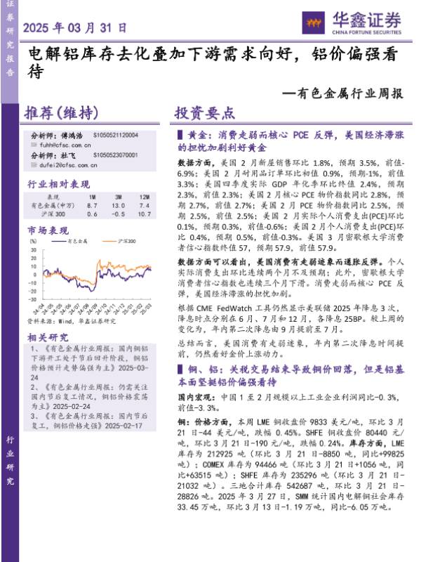 【华鑫证券】【20250331】20250331-华鑫证券-有色金属行业周报:电解铝库存去化叠加下游需求向好,铝价偏强看待-20页