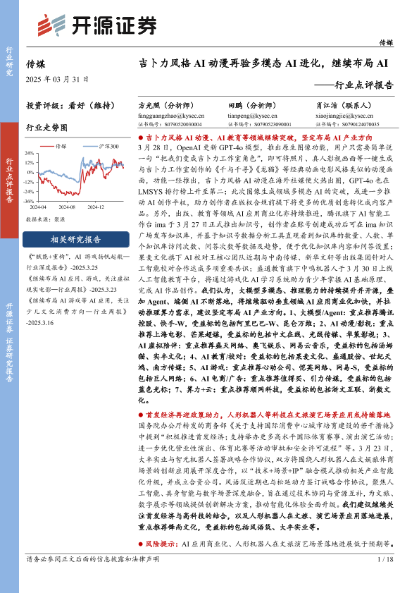 【开源证券】【20250331】传媒行业点评报告:吉卜力风格AI动漫再验多模态AI进化,继续布局AI-18页