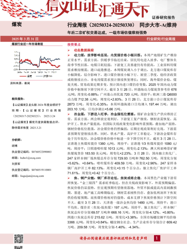 【山西证券】【20250331】煤炭行业周报:年后二宗矿权交易达成,一级市场估值维持强势-22页