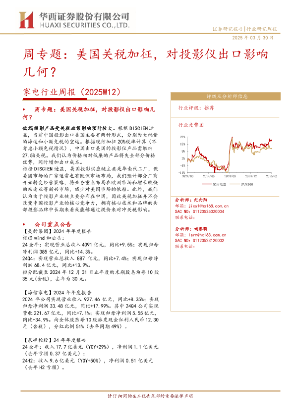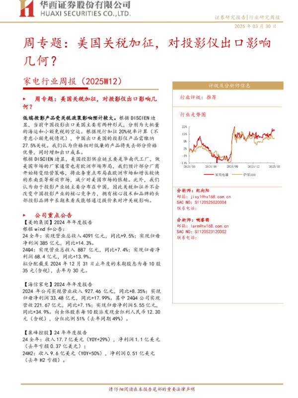 【华西证券】【20250330】2025W12家电行业周报:美国关税加征,对投影仪出口影响几何?-13页