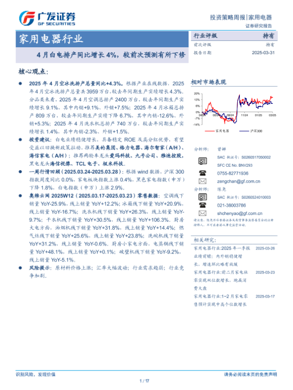【广发证券】【20250331】20250331-广发证券-家用电器行业投资策略周报:4月白电排产同比增长4%,较前次预测有所下修-17页