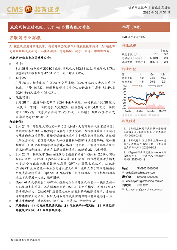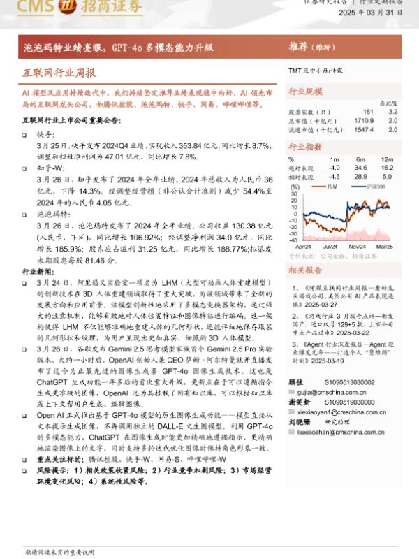 【海通证券】【20250331】互联网行业周报:泡泡玛特业绩亮眼,GPT-4o多模态能力升级-11页